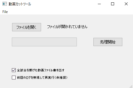 各試合ごとの短い動画のみがほしい場合は,下の「全試合を繋げた動画ファイルを書き出す」のチェックを外してください。